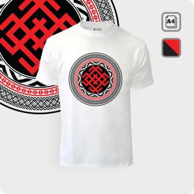 Рисунок оберега символ Белобога выполняется на футболке методом сублимационной термопечати на сэндвич ткани, что обеспечивает долговечность и износостойкость. Краски яркие и насыщенные. Стойкость от выстирывания.