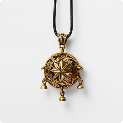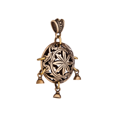 ЛатуньИзображение на подвеске символа «цветение» несет солярное значение. Оно включает в себя знак засеянного поля и цветок с восемью лепестками. Такое украшение способно принести удачу в делах и по хозяйству, дать достаток и благополучие семье.